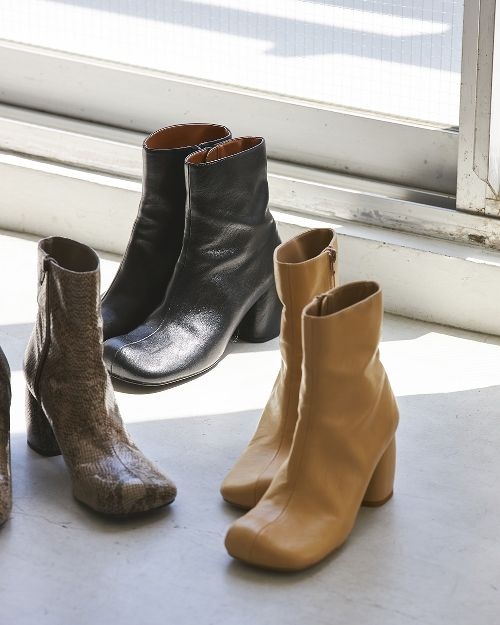 ぼってりとしたスクエアトウのエコレザーブーツは、足首がタイトでヒールも太くて安定感抜群。合わせるものを選ばないので絶賛へビロテ中! ブーツ 各¥31,900(トゥデイフル)