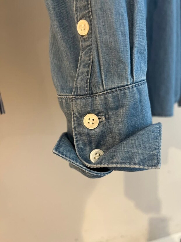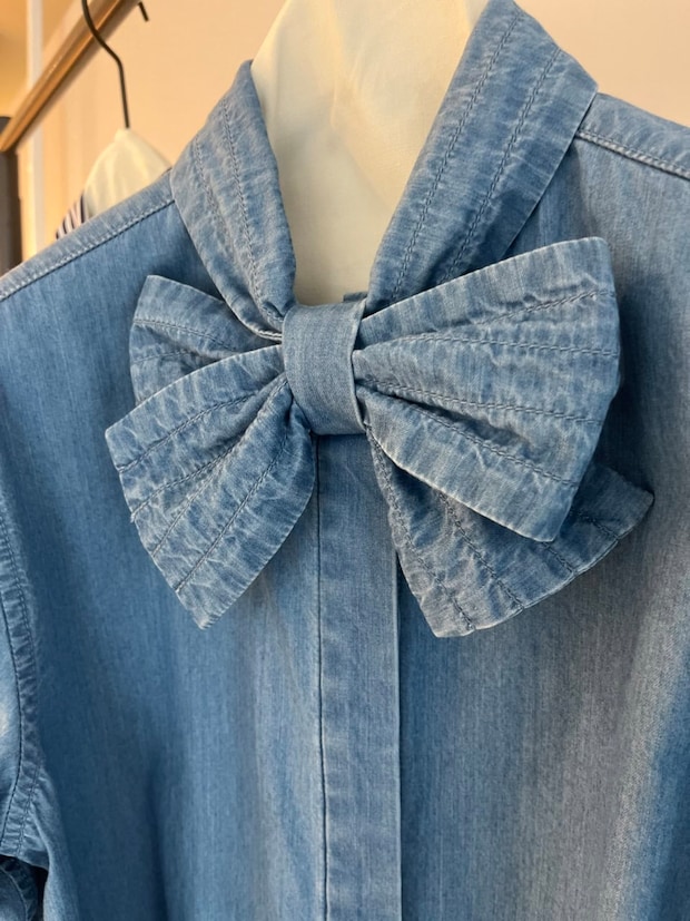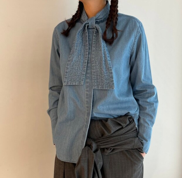 味ありデニム製。ボウタイシャツなのにこなれて見えるなんて最高です!