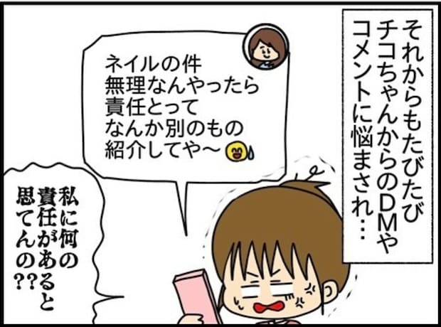 きよかさんがインスタにアップしたネイルの写真をきっかけに、大学時代の同期・チコちゃんとの思いがけないトラブルに巻き込まれることになりました。常識の通じないやりとりや、まわりへの迷惑行為に戸惑う中、きよかさんは共通の友人を通じて、チコちゃんの過去や心の背景を知ることになります。