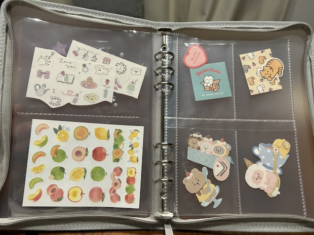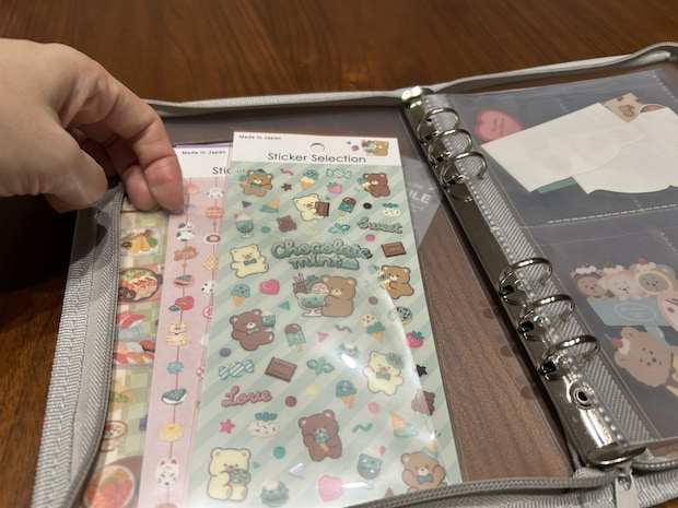 ジッパー付きのファイルを用いればシールが落ちる心配がなく、持ち歩きにも大変便利です。中身がうっすらと透けて見える可愛らしさも魅力となっています。