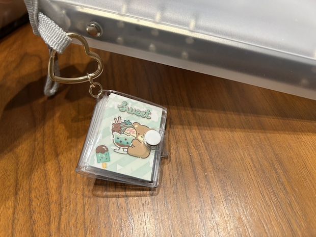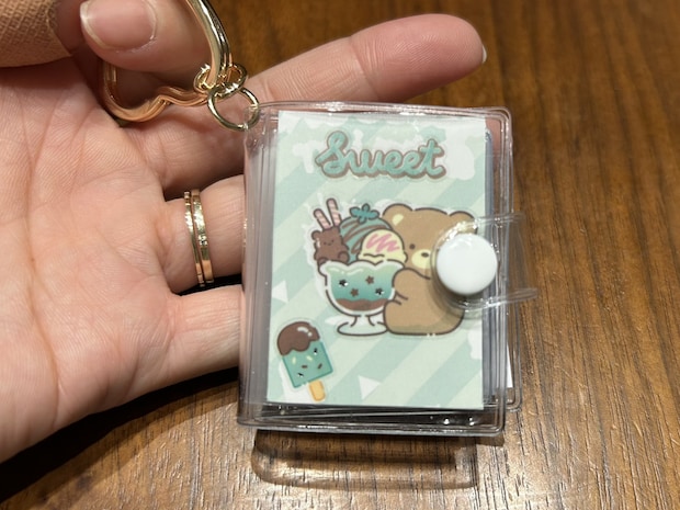 2つ目は、110円(税込)の「アルバムキーホルダー くま」をシール帳として活用するアイデアです。