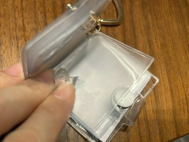本体サイズは約5.2×5.4×0.7cm、全長11.3cmのミニサイズで、塩化ビニル製のポケットが12個付いています。