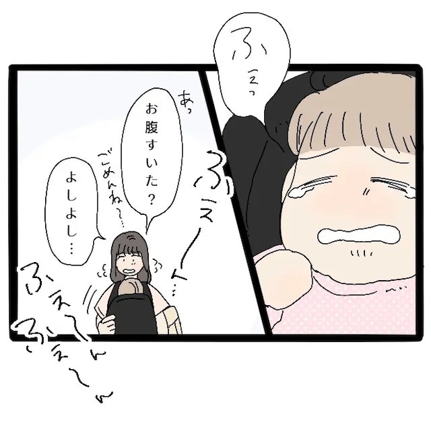 少しずつみんなから遅れてしまって焦っているところに、更にアオが泣き出してしまいました。お腹空いたかな?アオだってずっと抱っこひもで窮屈だよね。