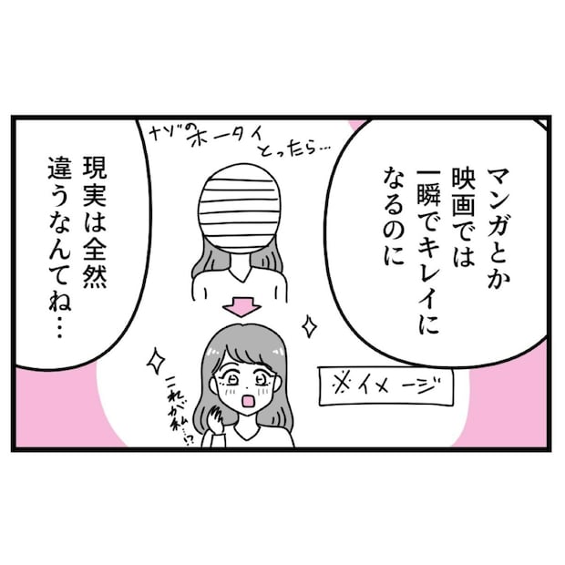 「こんなに腫れて大丈夫かな」と優菜の胸に不安がよぎります。漫画や映画では一瞬でキレイになっているけれど、リアルでは術後にも苦労が待っているのですね。