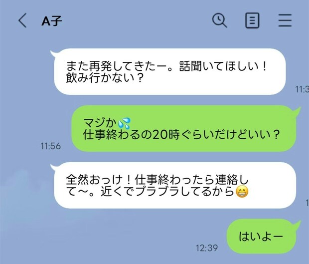 投稿者さんもよく知っている女友達とのことでそこは安心ではあるものの、なぜわざわざ産後で大変な時期に夫だけを飲みに誘うのかは疑問ですよね。悩みや愚痴を聞いてもらうのであれば人を選ぶべきですし、既婚者にわざわざ相談するというのは一般的にはあり得ないと言われてしまっても仕方ないと思います。