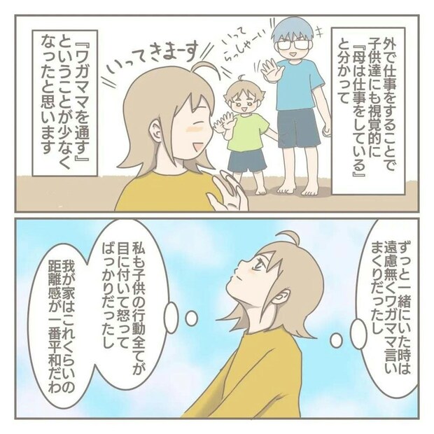 仕事に行くようになったヨカさんに、子どもたちも協力的です。親子のちょうどよい距離感を見つけつつあるようです。