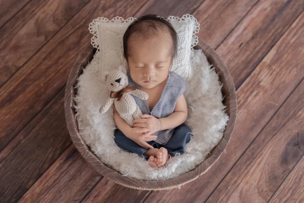 ベビーが新生児のころ撮ったというニューボーンフォトをシェアしてくれました♪