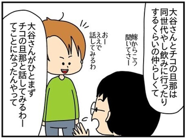 探りを入れるため、同僚の大谷さんからチコちゃんの夫にトラブルについて話してもらいました。チコちゃんの夫はどのような反応となるのでしょうか。