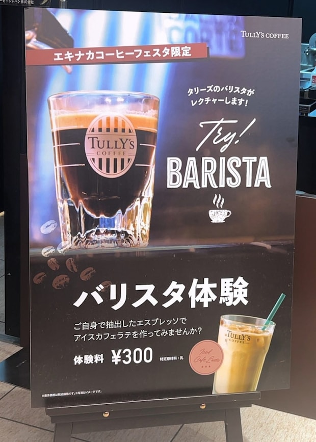 イベントは入場無料で、「Coffee Lovers(コーヒーを愛する人々)」をテーマに抽出・試飲体験や製品の販売、取り組みの説明を実施する。目玉は、「タリーズ」の店舗で使用しているエスプレッソマシンを実際に触れて作ることのできるエスプレッソ抽出・アイスカフェラテ作成体験(体験料300円)だ。自分で作った本格カフェラテを飲むことができる。