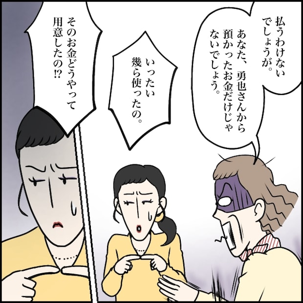 「払うわけないでしょうが。あなた、勇也さんから預かったお金だけじゃないでしょう。いったい幾ら使ったの?そのお金どうやって用意したの!?」義母にものすごい剣幕で問い詰められた玲美さんは、気まずそうに目を逸らしたまま口を閉ざします。