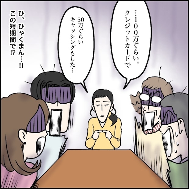 そして、少しの間のあと観念した玲美さんがゆっくり口を開きました。「・・100万ぐらい。クレジットカードで。50万ぐらいキャッシングもした・・」とぼそりと推し活につぎ込んだ金額を白状した玲美さん。想像よりも遥かに大きな金額にその場にいた全員が固まりました。ひ、ひゃくまん・・!!この短期間で!?