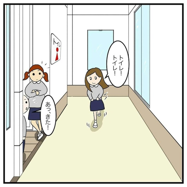 ある日、モコちゃんがトイレに行こうとしたところ、二人の女の子が前に立ちはだかり、トイレを使わせてもらえませんでした。