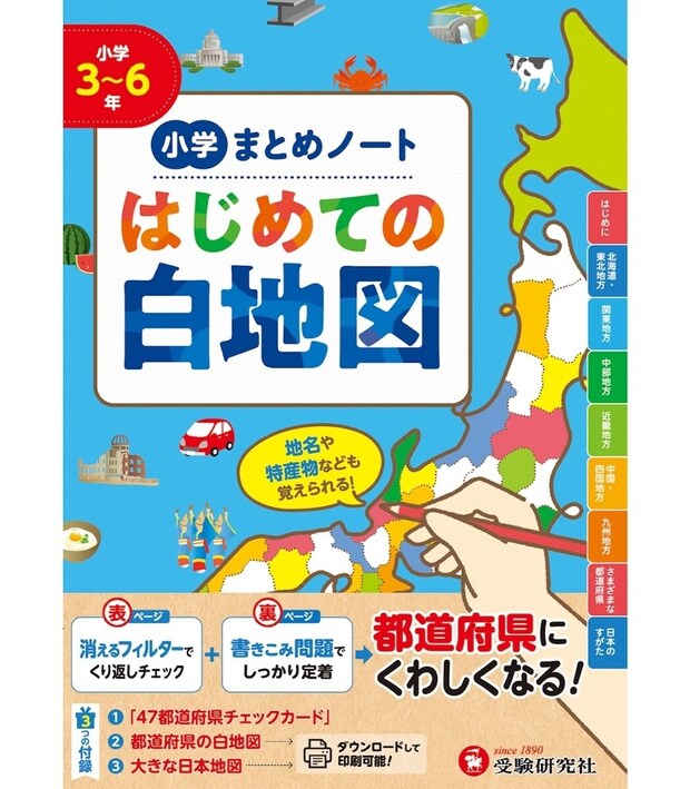 都道府県カード付きで楽しく地理が学べる!『小学 まとめノート はじめての白地図』