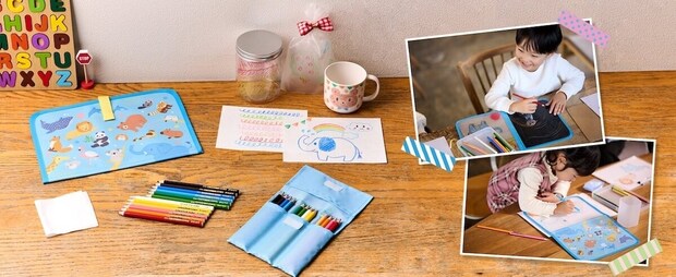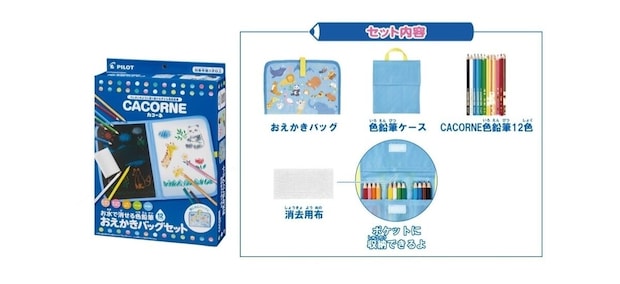セット内容:おえかきバッグ、色鉛筆ケース、CACORNE色鉛筆12色、消去用布