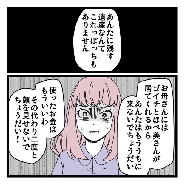 「二度と顔を見せないで」と言われ家から追い出された義姉。最後の最後まで謝罪はなく、自分勝手な義姉なのでした。