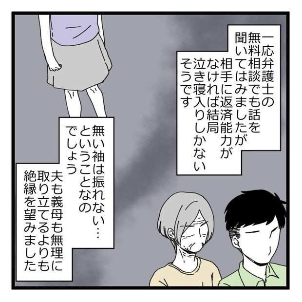 義姉との金銭問題後もほぺ美さんと義母の関係は良好なそうですが、正直なところ義姉にお金を返してほしいという気持ちは今も持っているそう。生活するうえではお金がかかりますし、義母の今後のことを考えるとお金はいくらあっても困ることはないですよね。とはいえ、返済能力のない義姉に対して取り立てることは難しく、義母も夫もお金よりも絶縁する方を選んだことで余計にほぺ美さんは何も言えなくなってしまったようです。