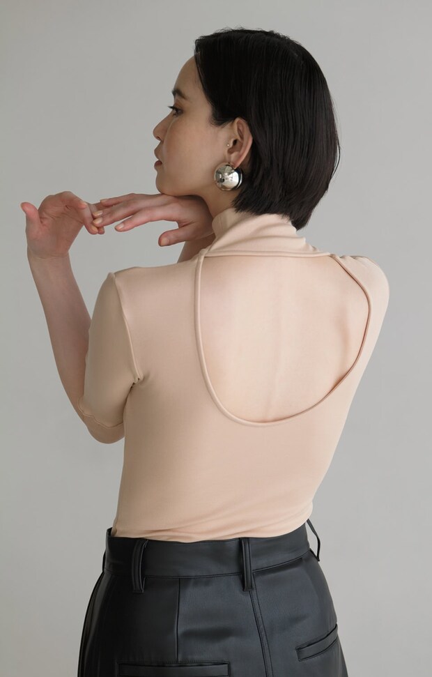 市民権を得たバックレストップスは、ミニマムなデザインで愛されている日本ブランド、イロットでチョイス。フィット感がありながらも肉感は拾わないので、からだのシルエットを美しく見せてくれるのも嬉しいポイント。モード感を加速する、ヌーディなカラーも◎。