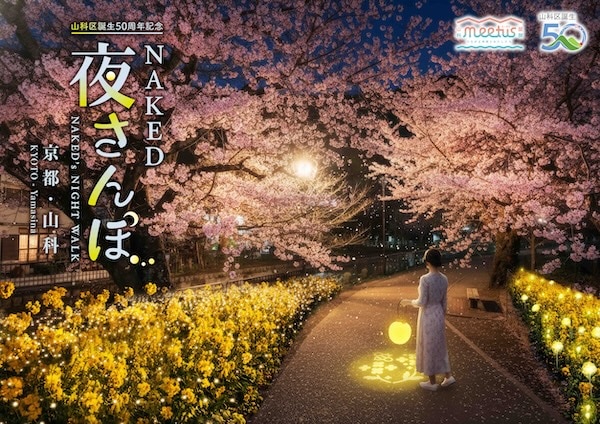 クリエイティブカンパニーのネイキッドは、京都市と連携し、京都市山科区誕生50周年を記念した夜桜ライトアップイベント「NAKED 夜さんぽ ―京都・山科―」を4月3日(金)〜5日(日)の3日間、山科疏水公園および東山自然緑地で開催する。