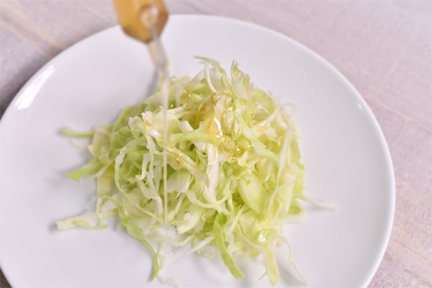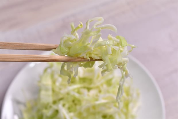 1. キャベツを細めの千切りにする。