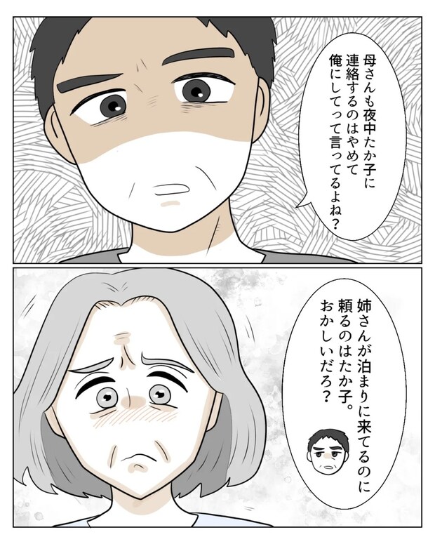 そして、義母にも「母さんも夜中にたか子に連絡するのはやめて。俺にしてって言ってるよね?姉さんが泊まりに来てるのに頼るのはたか子。おかしいだろ?」とはっきり言ってくれた和也さん。
