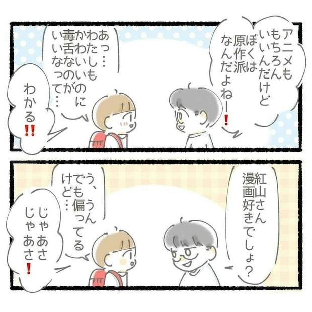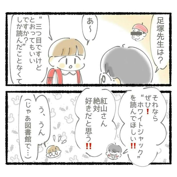 このとき初めて、紅子さんは白石くんと話します。好きなものを「好き」と、堂々と語る様子や、熱心に話す様子に驚きつつ、白石くんに勇気をもらいます。