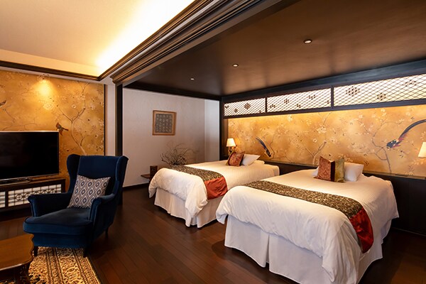 各部屋にはそれぞれ相応しい家具やシノワズリを配し、「伊藤左千夫スイート」と「柳原白蓮スイート」として表現した。