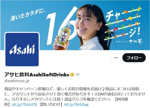 アサヒ飲料の公式「X」アカウントより
