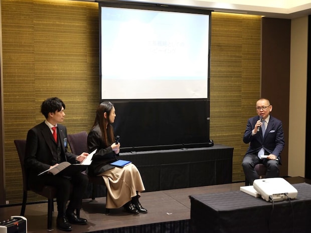 会見では、幸福学の第⼀⼈者として、産学官連携によるウェルビーイング研究と社会実装を推進し、⼀般社団法⼈ウェルビーイング学会代表理事も務める前野隆司教授とのトークセッションも行われました。