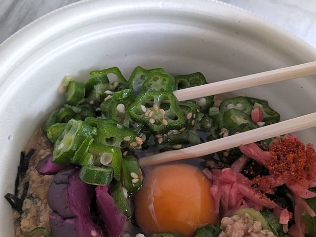 オクラで、さっぱり。丼もの1つだと、野菜不足になってしまうこともありますが、それを補えるのも嬉しい丼ぶりです。