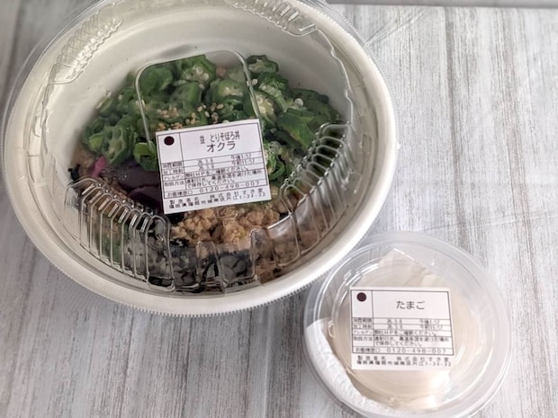 3つ目は、新商品の「オクラ旨だしとりそぼろ丼(並盛)」です。 定番の「旨だしとりそぼろ丼」に、オクラ・明太マヨをトッピングした2つの新商品が登場しました!