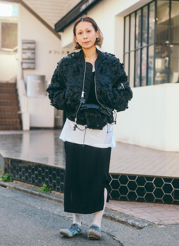 トレンドのレースアイテムも、レイヤード技でバランスよく仕上がる。重くなりがちなブラックコーデは、ほどよい肌見せで軽やかに仕上げるのがサマ見えのコツ。