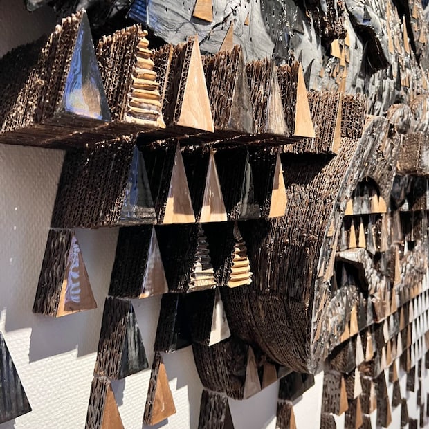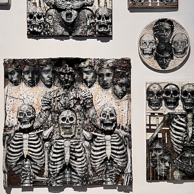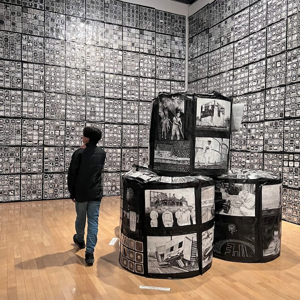 落書きみたいな絵が混ざっていてクスクスしたり、ダンボール出来た作品に息を呑んだり、わかりやすく表現してある作品はもちろんどれもインパクトが強く見応えがありました