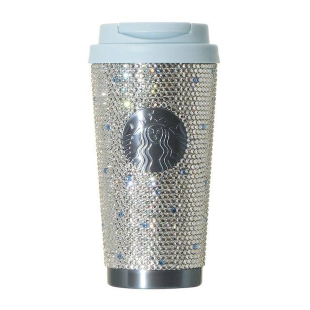 クリアのラインストーンが輝く華やかなステンレスタンブラー。真空二重構造ステンレスで保温・保冷性に優れています。