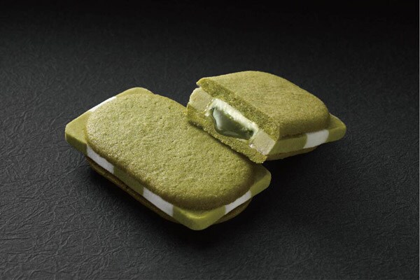 「萩の調 釉 日本茶」5個入1,296円は、市松模様にゆい上げたショコラクッキーのセンターに、日本茶の特製ソースを仕込み、その上から釉(ゆう)のかかりを想わせる緑茶のラングドシャをあしらっている。