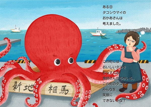 3月現在、「タコシウマイ」は県内外で販売されている。そうしたなか、震災を知らない世代の子どもたちにも食を通して福島の歩みを伝える新しい地域ストーリーコンテンツとして、デジタル絵本「タコシウマイ 希望のひと粒」が制作された。