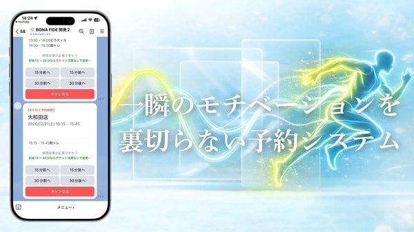 さらにBONA FIDEは、「今行ける」を逃さない、独自の予約システムを自社開発し、4月にリリース予定。
