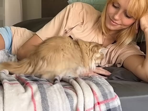 飼い主さんに甘えてぴったりくっつくのが日課。