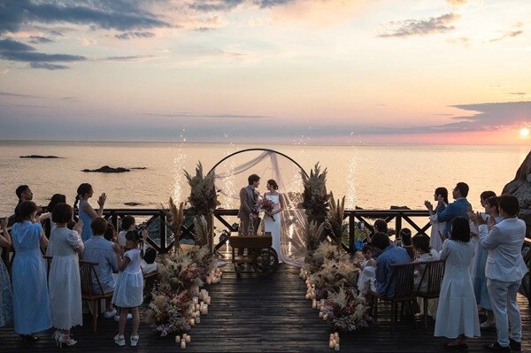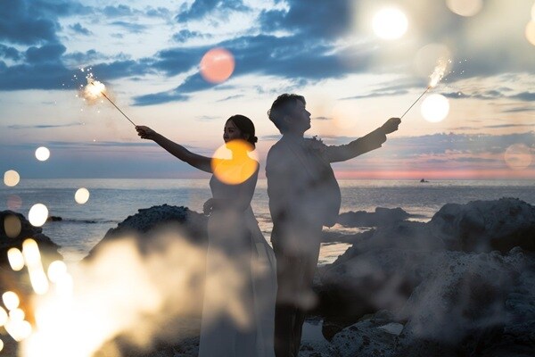 「リゾートウエディングフクイ」の代表は、「海の前で交わす誓いは、一生心に残る瞬間になります。形式に縛られず、おふたりらしい言葉で未来を誓う時間を届けたい。