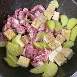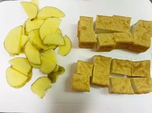 1.じゃがいもは半月切り、厚揚げは一口大にカットします。