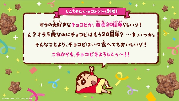 さらに、しんちゃんの声優・小林由美子さんが出演する20周年特別ムービーも公開。公式サイトもリニューアルしました。歴代パッケージや豆知識が楽しめる新コンテンツが追加され、記念イヤーを盛り上げます。