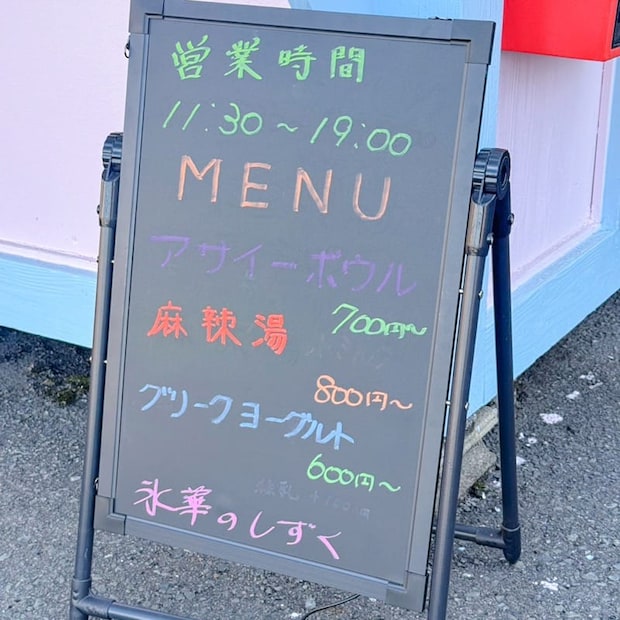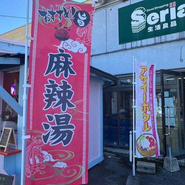 お店の横には、今話題の麻辣湯マーラータンやアサイーボウルののぼりが。