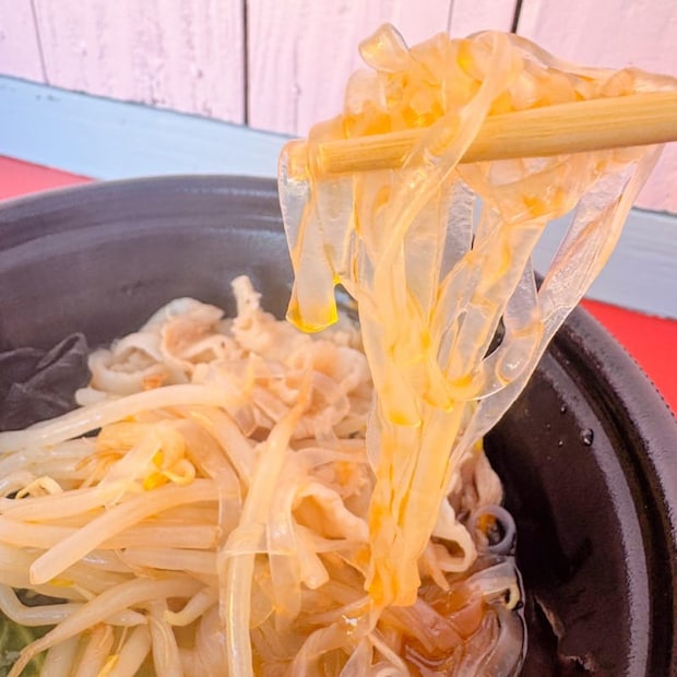 春雨は、つるつるもちもちの中太麺。旨味をたっぷりまとって、噛むたびに刺激とコクが広がり、やみつきになる美味しさです♪