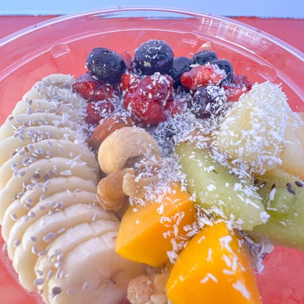 ベリーミックスやマンゴー、パインにキウイ、ナッツなどたくさんのフルーツがぎっしり!