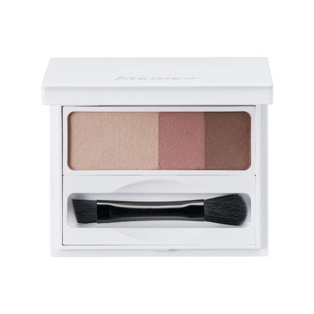 左端は自然なコントゥアリングをかなえる影カラー。ほんのりグレイッシュなニュアンスカラーで本物の影感を再現。1アイテムで目周りの立体感をより華やかに。