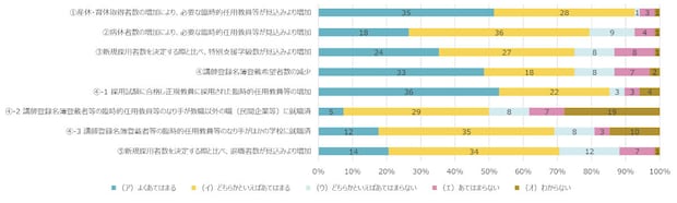 小学校では、学級担任をする教師が不足するケースが1,086件ほどあり、校長や副校長などが代替していました。一部の学校では、美術や技術など、特定の教科を教える教師が不在で、授業が十分に実施できない事態もおきていましたが、教育委員会の連携により、9月までにはすべて解消しているとのことです。