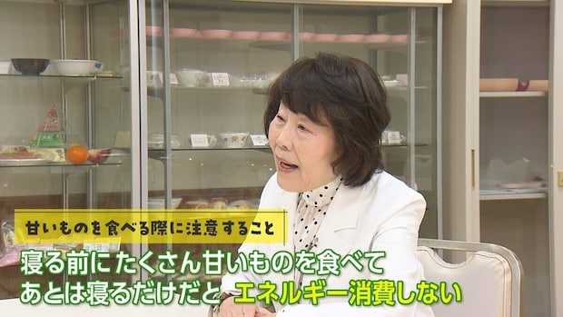 「夜遅く、例えば寝る前にたくさん甘いものを食べてあとは寝るだけ、となるとエネルギーを消費しません。すると、甘いものの中に入っている糖質が脂肪に変わり、体に蓄積されてしまうんです」