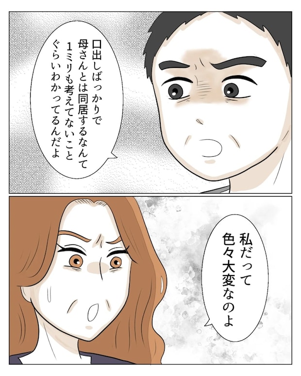 「口出しばっかりで母さんとは同居するなんて1ミリも考えてないことぐらいわかってるんだよ」と和也さんが言うと、エミさんは「私だって色々大変なのよ」と言い訳しました。