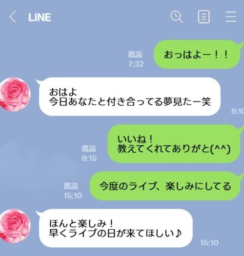 夫からおはよー!って送ってて、ほぼ毎日やりとりしてます。内容は他愛もないことですが、2人で飲みに行ったり今度ライブに行くと言ってましたがその女と一緒に行くようです。決定的な不倫の内容はないですが、「〇〇と付き合ってる夢見たー笑」「いいね教えてくれてありがとう」みたいなやりとりもあり気分悪いです