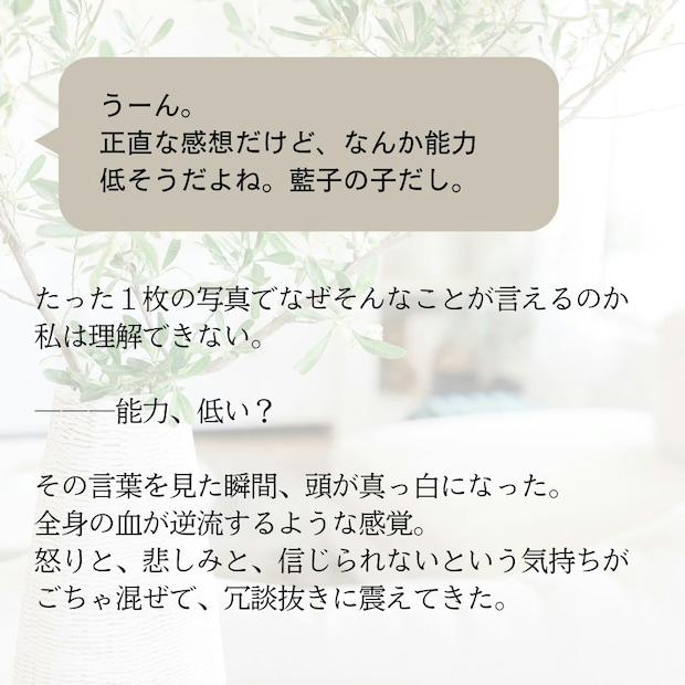自身も出産してから、子どもの状況に不安を覚えるようになった希。するとまた、藍子に対し棘のあるメッセージを送るようになりました。