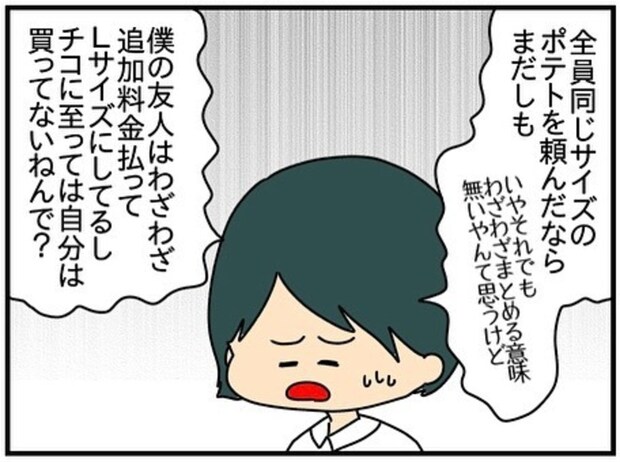 なんとチコちゃんは、自分以外のみんながそれぞれに購入したポテトを勝手にまとめてしまいました。